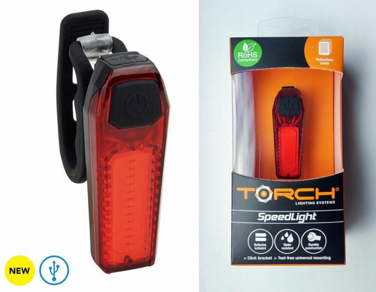 TORCH SPEEDLIGHT 55005 fényesen világító USB újratölthető hátsó kerékpárfény. A fáklyalámpák kifinomult mérnöki és világítástechnikai megoldásokat kínálnak, amelyek világszínvonalú LED-technológiát használnak az erős fénysugár elérése érdekében. Robusztus kivitelezés és nagy teljesítményű újratölthető akkumulátor, hosszú órákig tartó lámpahasználatot és nagy fénykibocsátást biztosít. JELLEMZŐK: < ul>